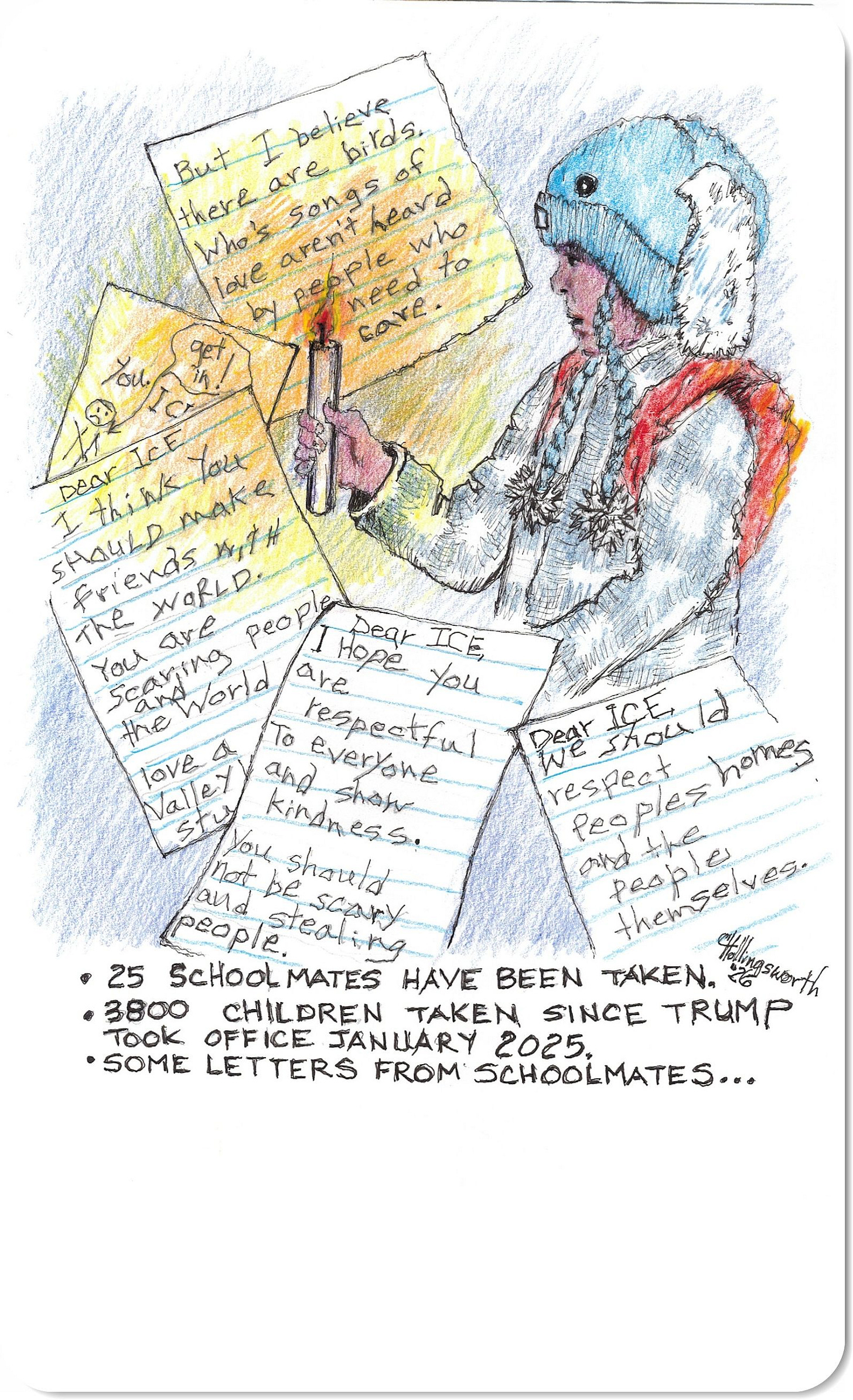 Liam Conejo Ramos, a 5-year old little boy still in kindergarten, was taken by ICE along with his father and flown from Minneapolis to a detention facility in southwest Texas. Liam’s physical health was so impacted by the trauma that it required a judicial ruling to stop deportation proceedings and return the father and son to their home in Minnesota. It should be noted that the family were already lawfully seeking legal asylum when they were detained and scheduled for deportation.